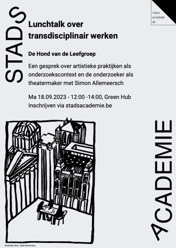 Een onderzoeker als theatermaker, een theatermaker als onderzoeker? Welke kansen biedt deze dualiteit van werken. In deze lunchtalk zal Simon Allemeersch spreken over zijn werk als onderzoeker én theatermaker op de Guislainsite en in de Bloemekenswijk. Theater maken is voor hem een manier om publiek onderzoek te voeren. Hoe hij dit ziet, voelt, beleeft, onderzoekt, zal hij in deze lunchtalk voorstellen.
