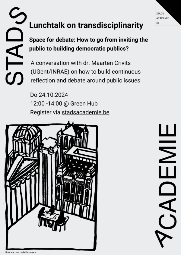 The Stadsacademie is set up as a platform to build collective action, such as problem formulation, inquiry, action, political and societal debate, around a diversity of public issues between urban and academic actors. However, it has been a challenge to bridge the gap between the city and the university, and to guarantee ongoing collective reflection in our diverse trajectories. Students graduate and move on, young researchers finish their contracts, and professionals increasingly juggle various responsibilities with little time left to engage in collective reflection. Often, engagement is temporary, with partners stepping back after their formal responsibilities or initial involvement in research or consultation. With this lunchtalk we want to dive into concepts that can create environments for a more continuous collaboration.