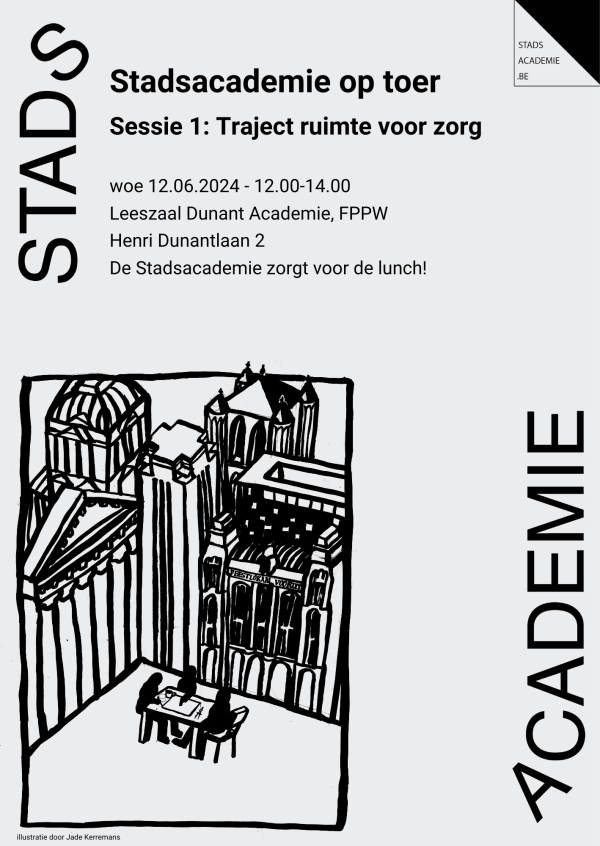 Bij deze eerste editie stellen we graag het traject ‘Ruimte voor Zorg’ voor. Daar worden verscheidene concrete vragen behandeld, die interessant zijn voor de Faculteit Psychologie en Pedagogische Wetenschappen. Hoe kan de-institutionalisering van zorg zich vertalen in de stedelijke context? Wat als we woonzorgomgevingen in de toekomst niet langer zien als enclaves in de stad of stadsrand, maar als deel van het fijnmazige stedelijk weefsel? We nemen jullie mee in de coulissen van de onderwijs- en onderzoeksactiviteiten die met deze vragen aan de slag gaan. Verschillende betrokkenen, van UGent, Stad Gent, ontwerpers… stellen julllie de uitdagingen en aandachtspunten voor. Tegelijkertijd stellen zij voor hoe de Stadsacademie de onderzoekers, studenten, zorgaanbieders, professionals en beleidsmakers een platform aanbiedt, dat hun denk- en handelingswijzes beïnvloedt.